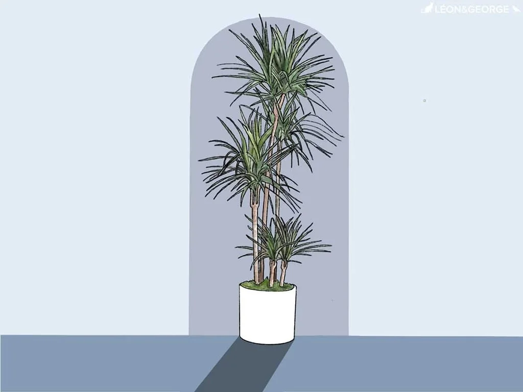 Dragon trees are plants with succulent-like spiky leaves that require little care.